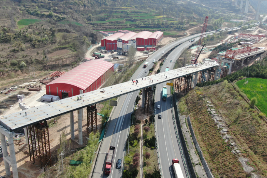 4月11日,旬鳳高速公路項目土建2標李家坡大橋右幅上跨福銀高速公路鋼箱梁順利架設貫通,實現了旬鳳高速全線鋼箱梁首個開工、首個貫通的控制性工程。